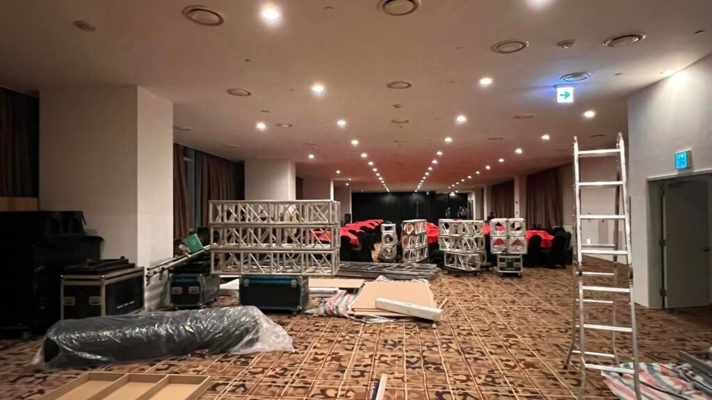 Before the actual loading begins, both teams engage in meticulous planning. This includes reviewing event blueprints, technical riders, and stage layouts to ensure that all required equipment is accounted for. The M&E team focuses on power distribution plans, cabling routes, and load capacities, while the AV team reviews sound, lighting, and visual display requirements. Equipment is organized and packed, with components such as trusses, lights, soundboards, and screens pre-labeled for quick identification.